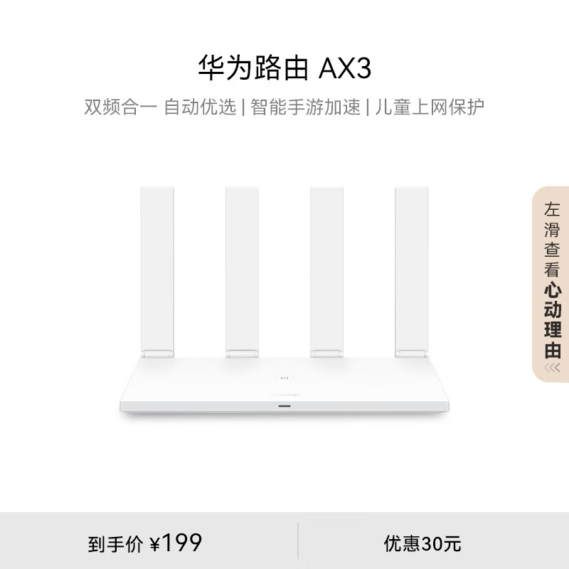 华为路由AX3 双频合一 自动优选 智能手游加速 wifi6/多连不卡无线家用穿墙/AX3000/高速千兆路由器价格:229.00元!