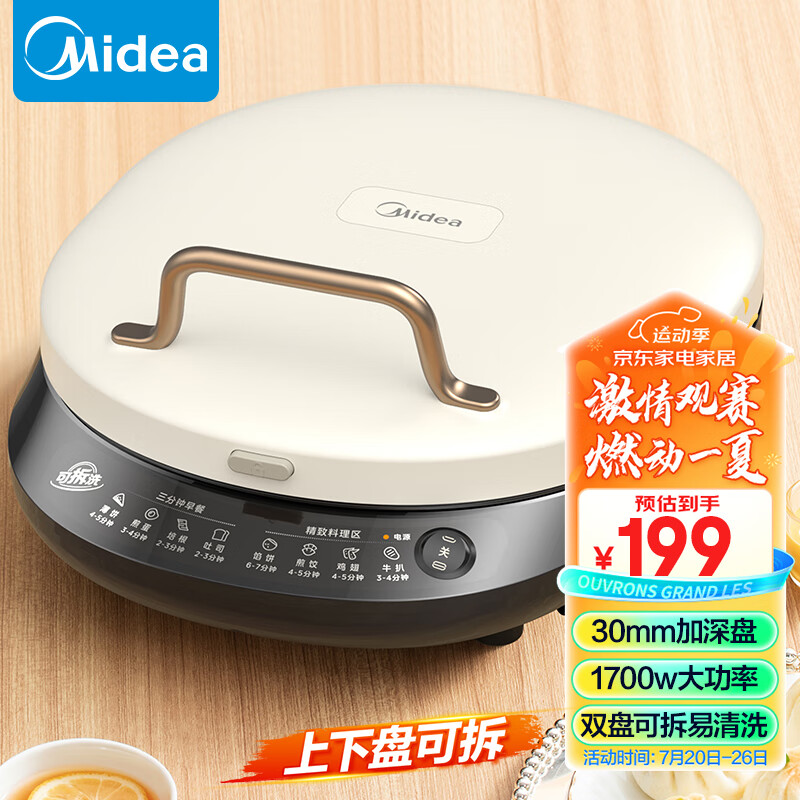 美的(Midea)电饼铛家庭用双面加热上下盘可拆洗煎饼铛煎烤机烙饼锅早餐机加深烤盘大火力大尺寸电饼档JKC3078价格:199.00元!