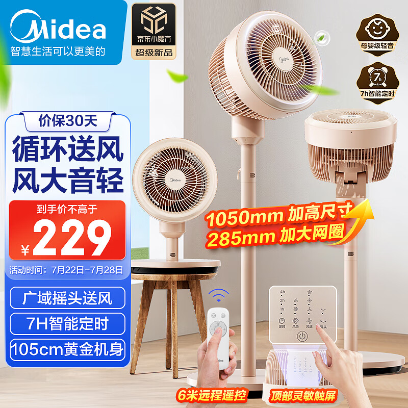 美的(Midea)【清新简约】家用定时空气循环扇摇头立式电风扇轻音节能落地扇宿舍桌面小型风扇空调伴侣FGA24TYR价格:249.00元!