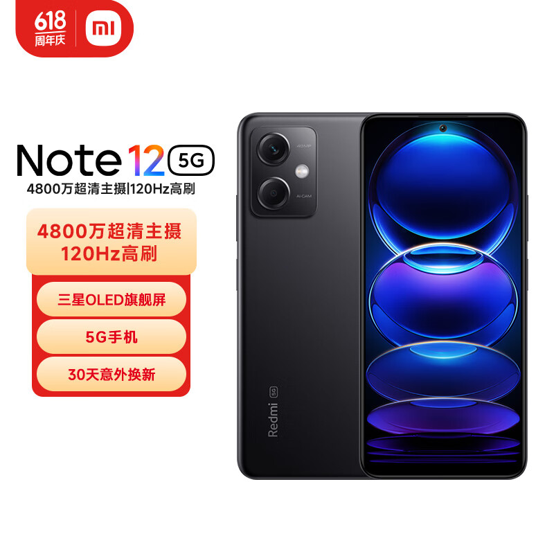 小米(MI)Redmi Note12 5G 120Hz OLED屏幕 骁龙4移动平台 5000mAh长续航 8GB+128GB子夜黑 小米红米价格:849.00元!
