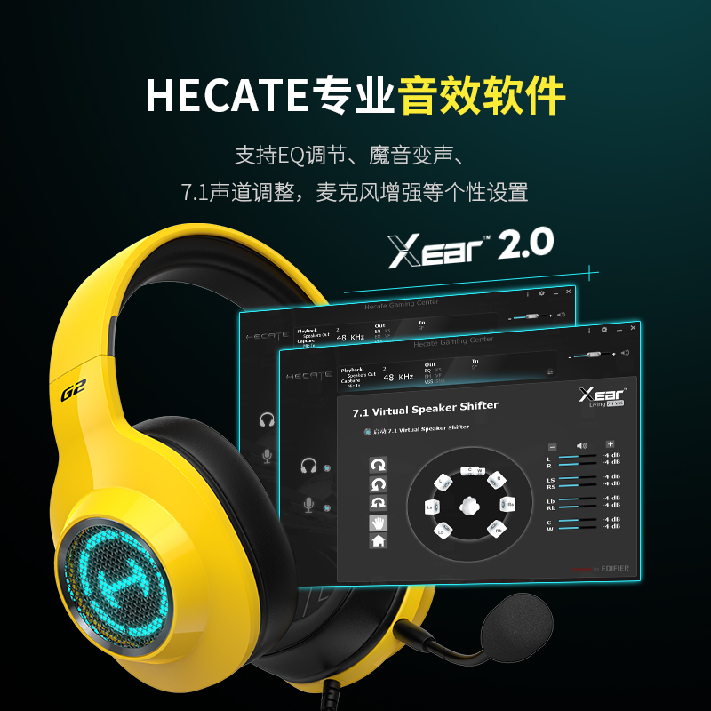 漫步者(EDIFIER)HECATE G2专业版 USB7.1声道 游戏耳机电竞耳麦头戴式电脑耳机麦克风吃鸡耳机带线控 兰博黄价格:199.00元!