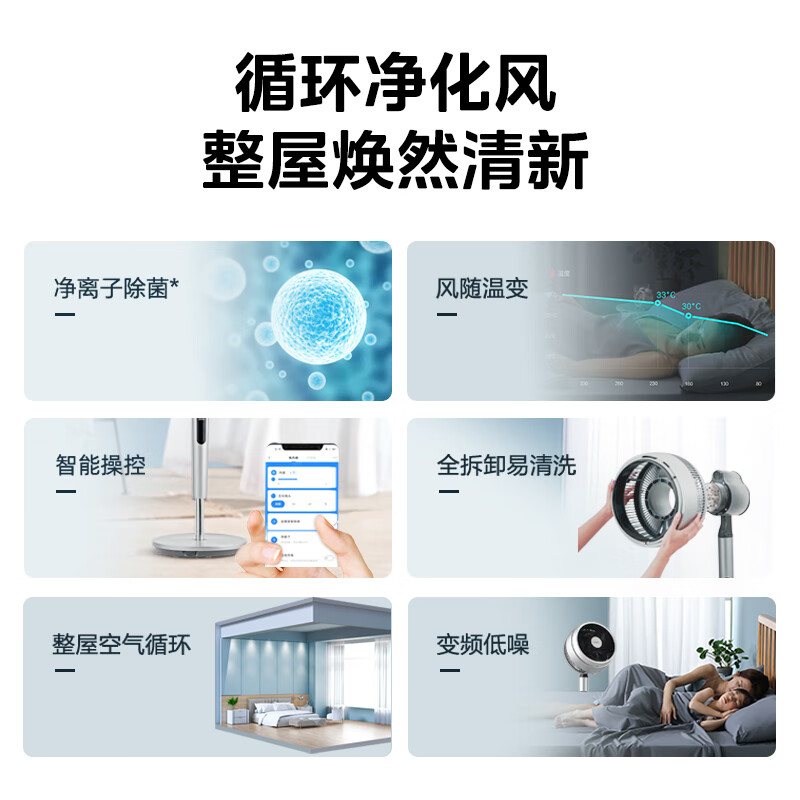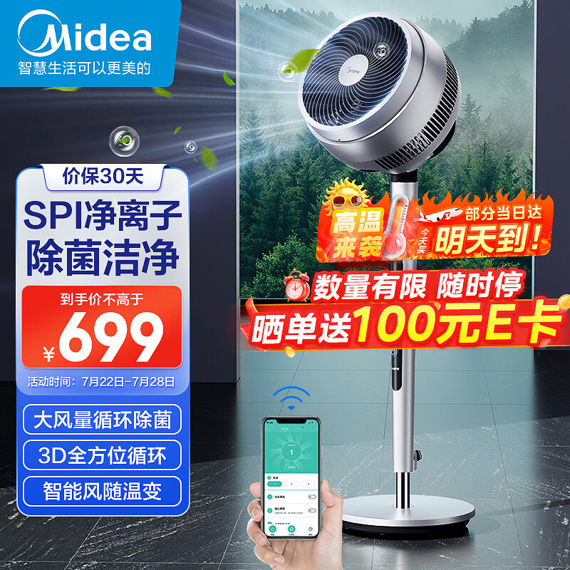 美的(Midea)【品质臻选】3D摇头空气循环扇四季净化扇轻音电风扇遥控立式风扇变频落地扇空调伴侣FGD24WDY价格:699.00元!