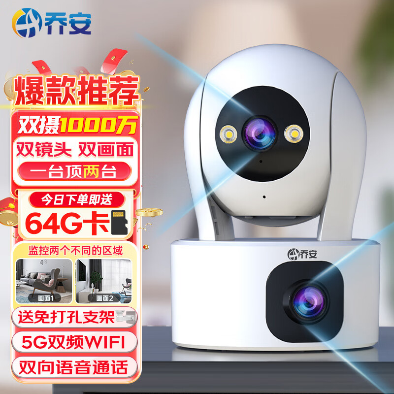 乔安双摄1000万摄像头监控无线wifi网络高清夜视360度全景云台旋转无死角室内家庭手机远程监控器家用价格:169.00元!