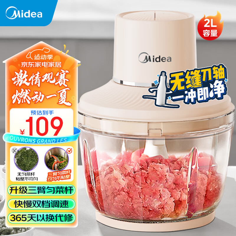 美的(Midea)绞肉机家用 料理机辅食机婴儿 绞馅机家用 碎肉机多功能大容量大功率搅拌机电动绞肉馅打蒜器 JC21价格:109.00元!