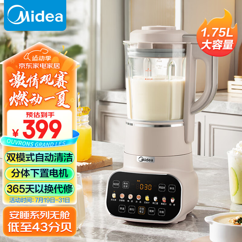 美的(Midea)低音破壁机安睡SE家用豆浆机 多重降噪榨汁机双模式自动清洗早餐机1.75升大容量MJ-PB12S49价格:399.00元!
