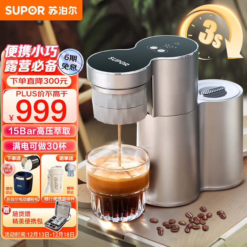 苏泊尔(SUPOR)意式家用萃取半自动咖啡机 办公室宿舍商用小型便携式摩卡手冲咖啡壶 全自动美式花式SW-CFP201价格:999.00元!