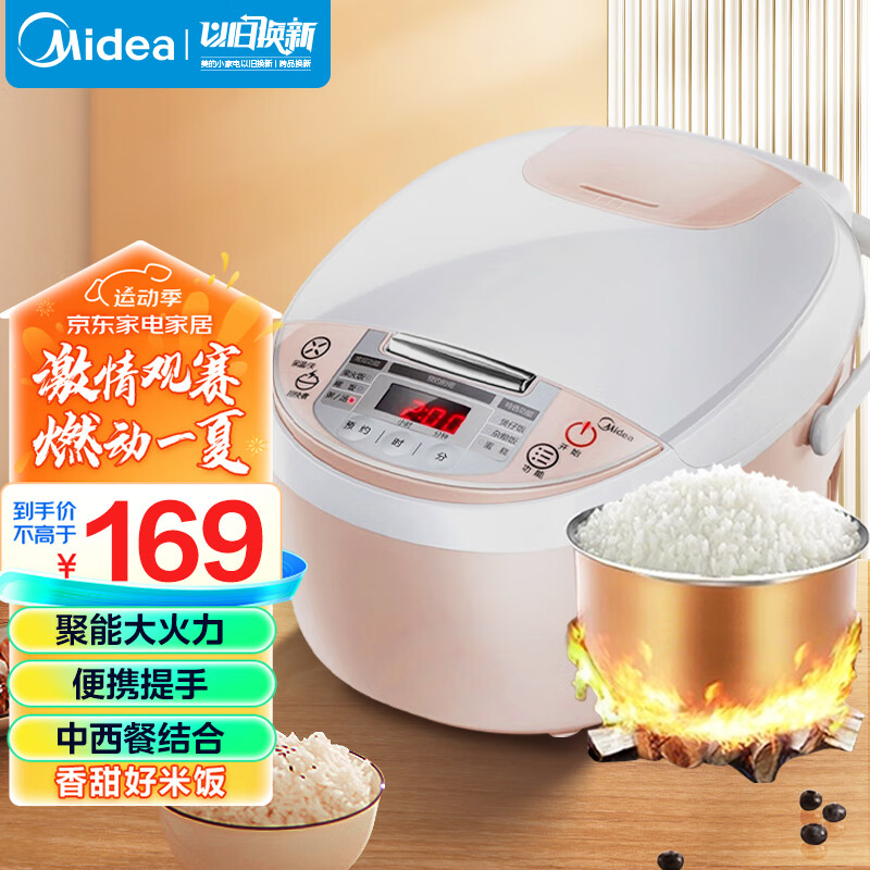 美的(Midea)电饭煲小电饭锅迷你3L微压蒸汽阀24小时预约黄晶内胆家用蒸米饭锅WFS3018Q(2-6人)价格:169.00元!