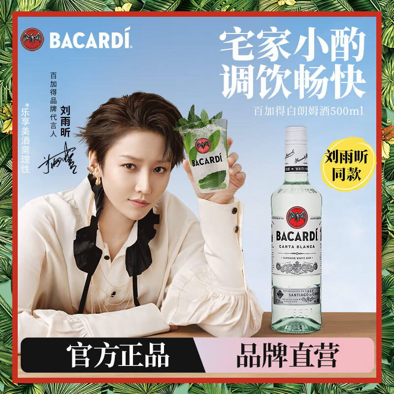 百加得(Bacardi) 洋酒 白朗姆酒 莫吉托 基酒调酒 500ml 调酒必备价格:55.00元!