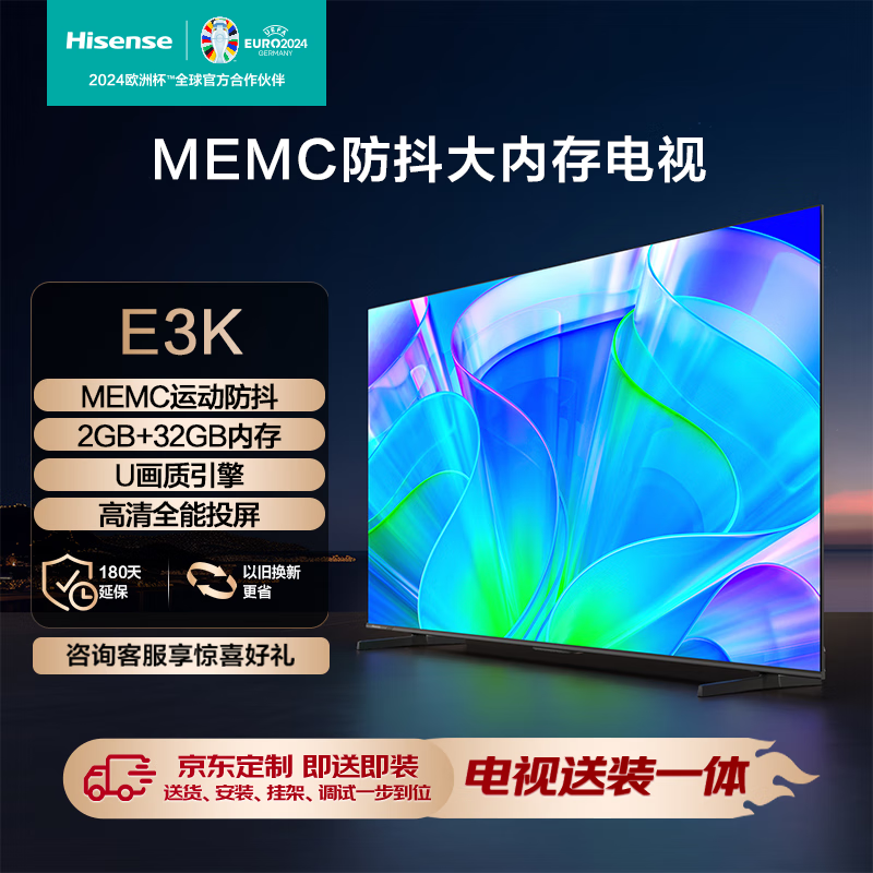 海信电视65E3K 【送装一体版】 65英寸 MEMC防抖 U画质引擎 4K高清智慧屏 客厅家用液晶平板电视机价格:2422.00元!