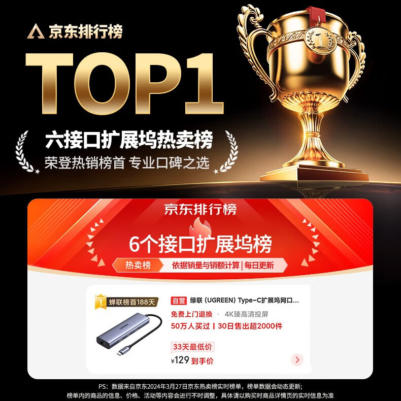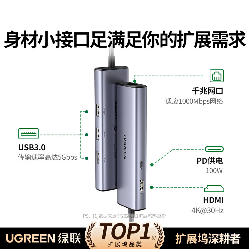 绿联(UGREEN)Type-C扩展坞网口千兆拓展坞USB分线器雷电4转HDMI网线转接头4K转换器适用苹果MacBook华为电脑价格:129.00元!