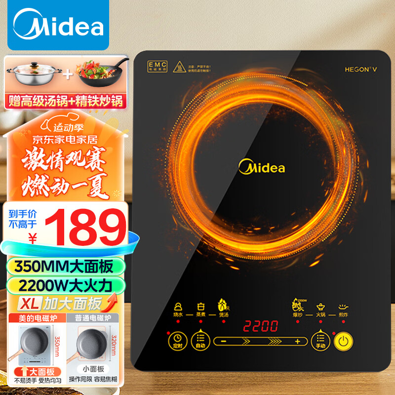 美的(Midea)电磁炉 家用 2200W大功率 滑控调节 电磁灶 火锅炉 耐用面板 一键爆炒 智能定时 WH2202价格:239.00元!