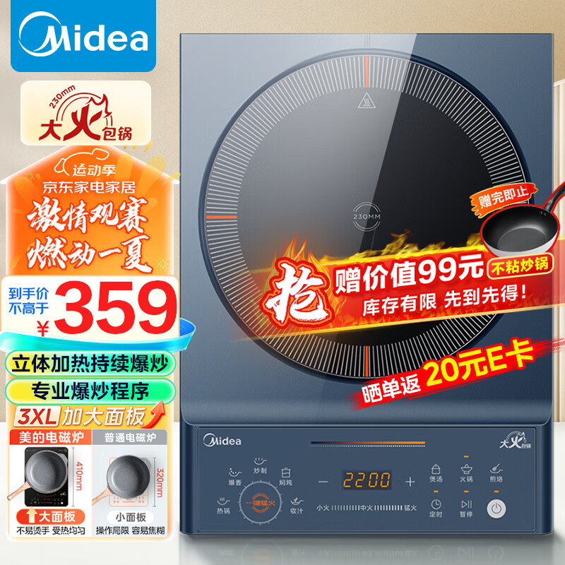 美的(Midea)电磁炉 家用大功率 匀火加热 火锅炉 九档火力 智能定时 MC-CLC2266价格:399.00元!