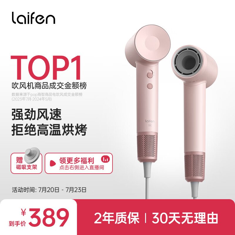 徕芬Laifen SE 家用吹风机 大功率速干电吹风 莱芬负离子大风力不伤发风筒 赠男士女士七夕情人节礼物 SE浅粉色(赠磁吸支架)价格:600.00元!