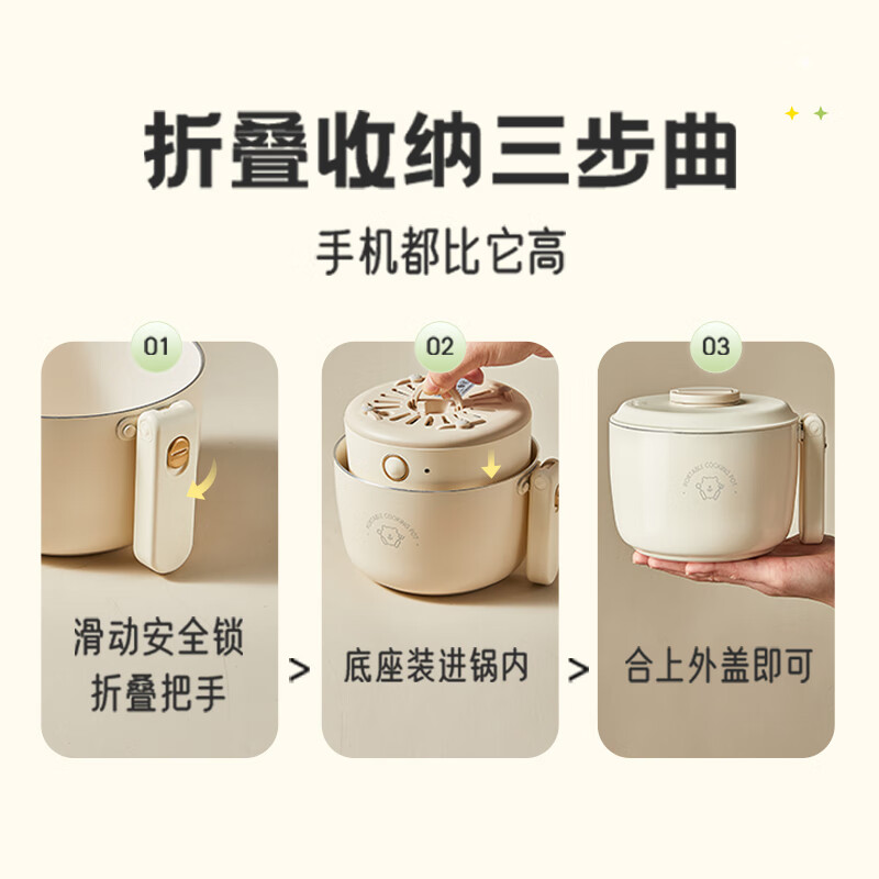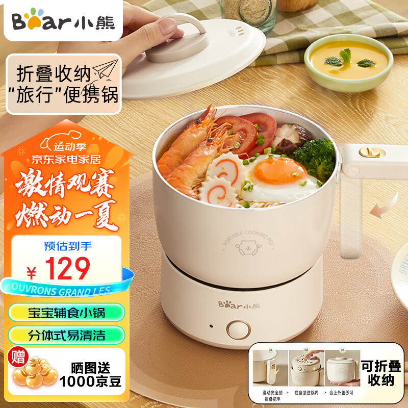 小熊(Bear)电煮锅 电火锅 电热锅 可折叠便携式1.2L小电锅分体 学生宿舍多功能锅蒸煮煎炒锅泡面锅 DRG-V12Z1价格:129.00元!