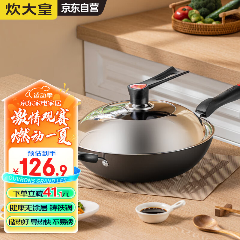 炊大皇铁锅炒锅 传世32cm无涂层铸铁炒菜锅 电磁炉燃气灶通用锅具C32D2价格:168.00元!