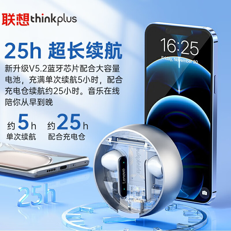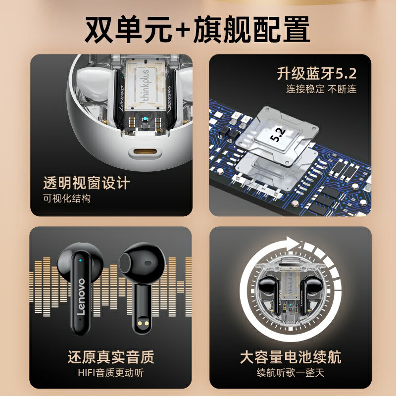 联想thinkplus LP8-pro黑 真无线蓝牙耳机 通话降噪 运动音乐耳机 半入耳式手机耳机 苹果华为手机通用价格:169.00元!