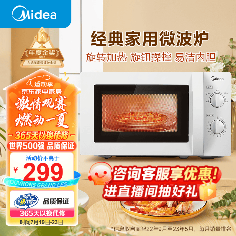 美的(Midea)快捷微波炉 家用小型 360°转盘加热 旋钮操控 易洁内胆(M1-L213B)价格:299.00元!