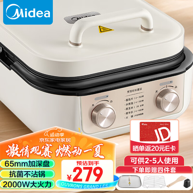 美的(Midea)电饼铛家用下盘可拆多功能蒸锅火锅炒锅 双面加热大火力可调烙饼煎饼烤肉锅加大加深电饼档2626S价格:279.00元!