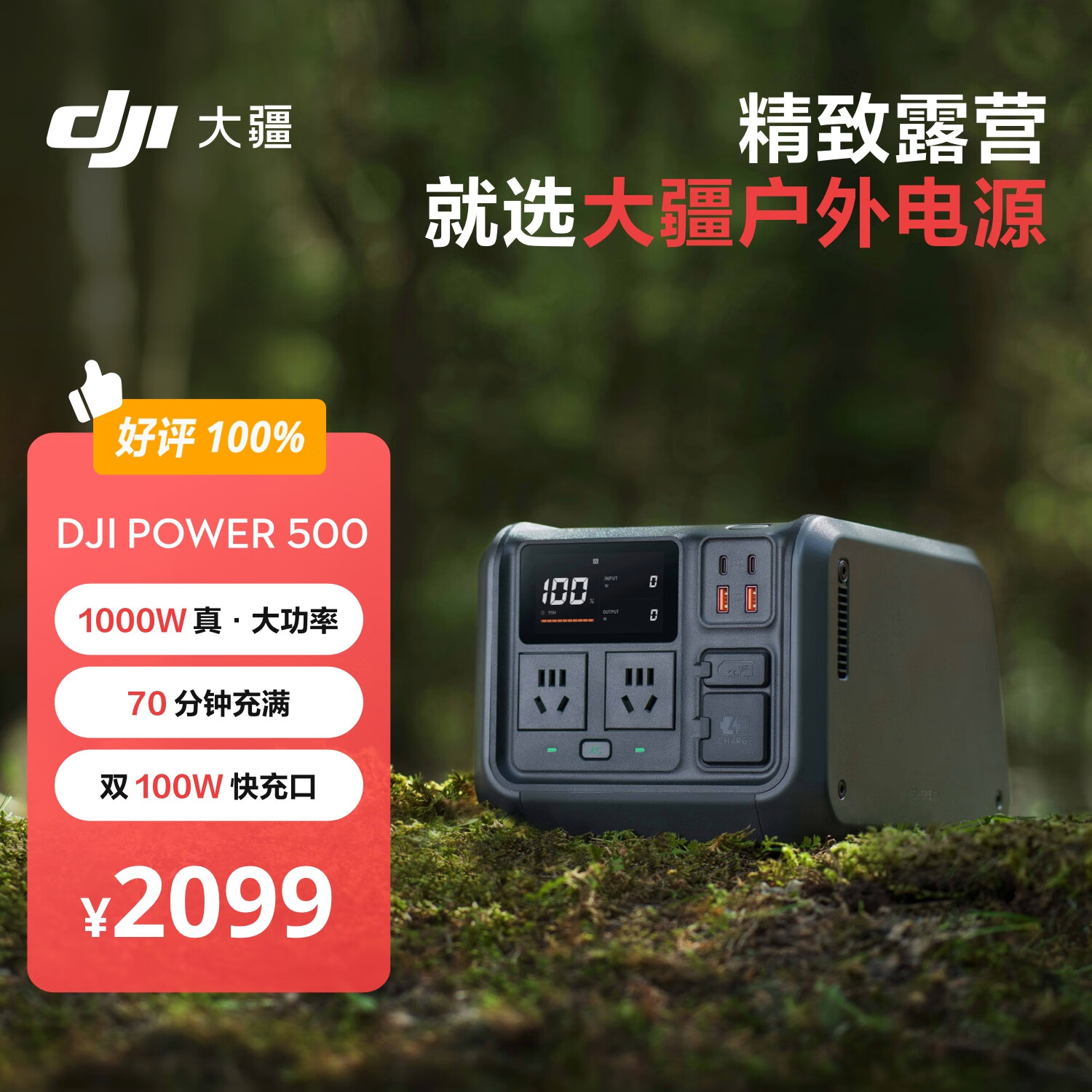 大疆【1000W真大功率】便携户外移动电源220V 露营户外车载自驾摆摊备用太阳能储能电源 DJI Power 500价格:2099.00元!