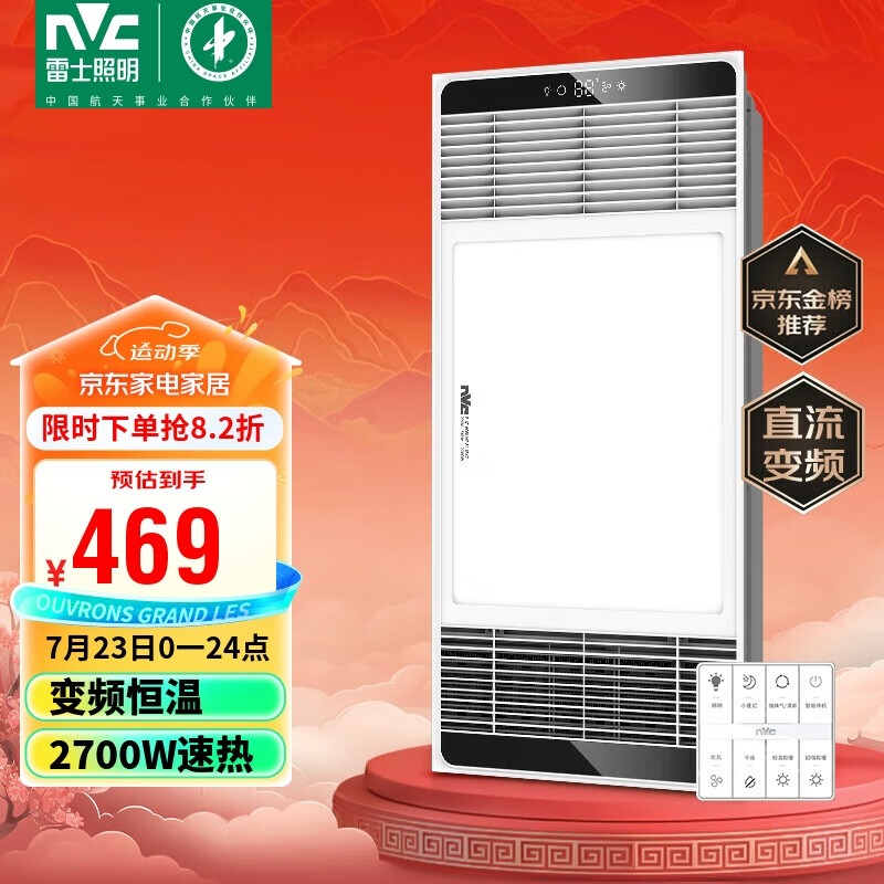 雷士(NVC)智能变频超薄极简浴霸浴室暖风照明排气一体卫生间集成吊顶Y346价格:599.00元!