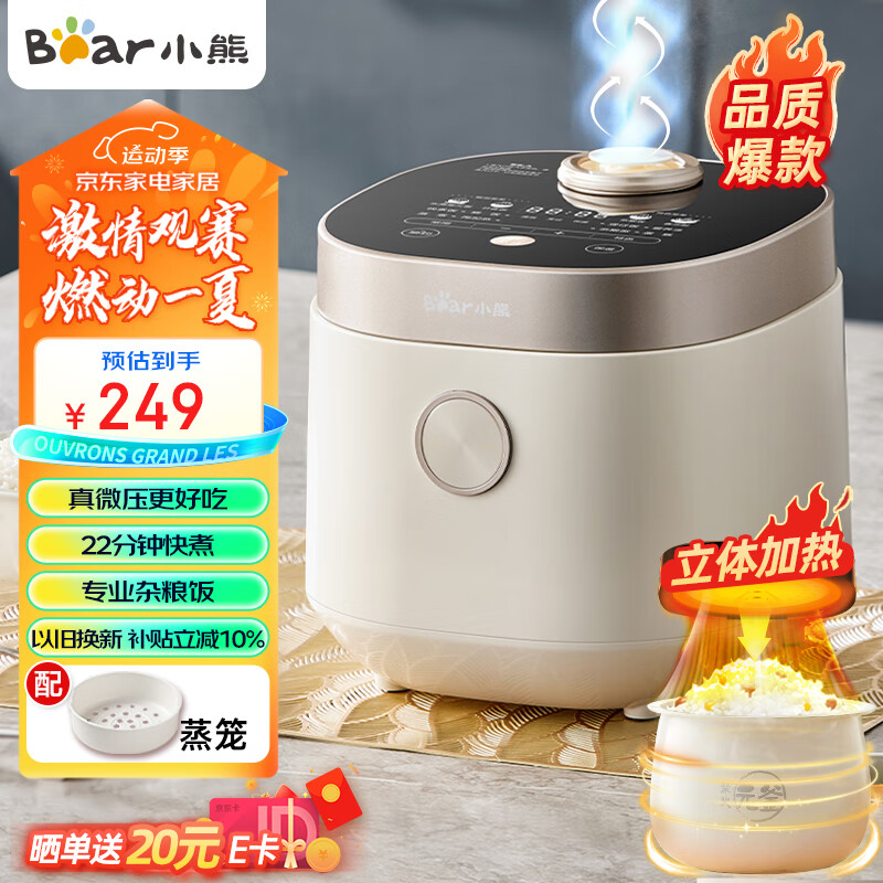 小熊(Bear)电饭煲 电饭锅迷你家用小容量1-2人一键快煮饭微压多功能预约配蒸笼1.6L蒸饭器小型小2人DFB-C16Q1价格:249.00元!