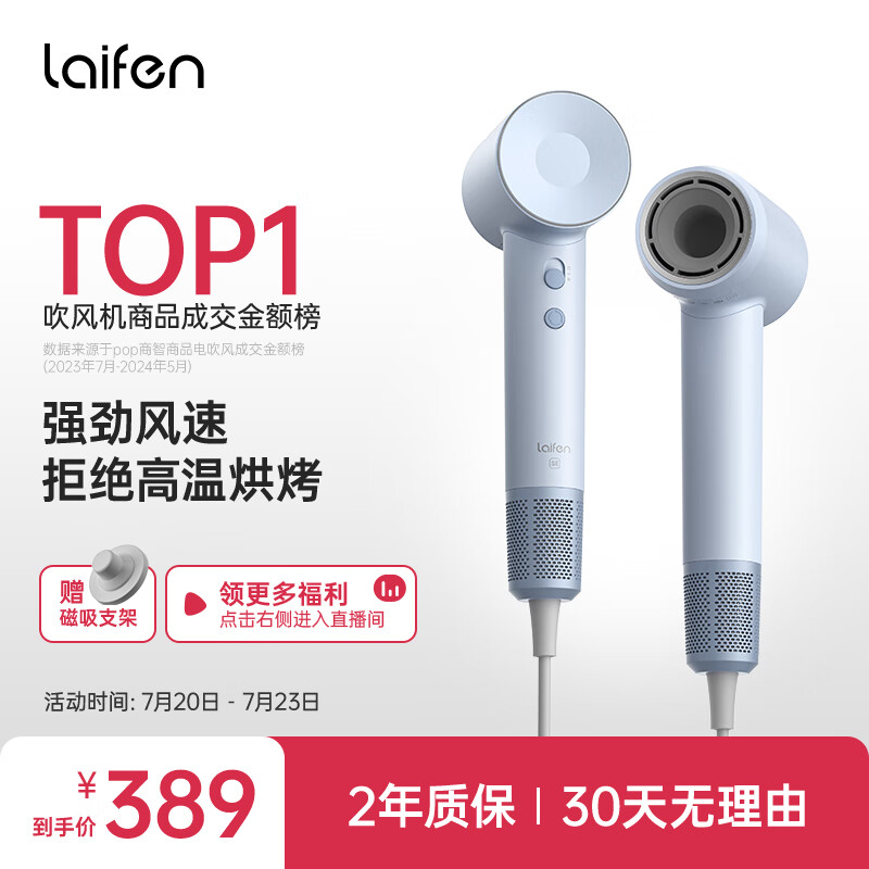 徕芬Laifen SE 家用吹风机 大功率速干电吹风 莱芬负离子大风力不伤发风筒 赠男士女士七夕情人节礼物 SE浅蓝色(赠磁吸支架)价格:600.00元!