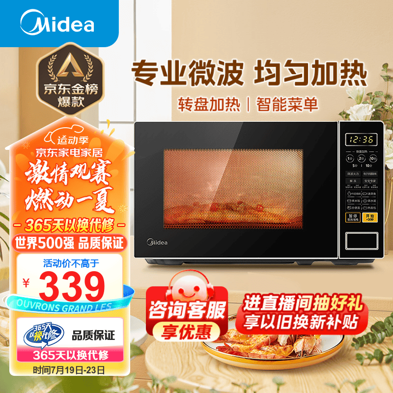 美的(Midea)微波炉 家用小型20升 转盘加热 智能菜单 一键解冻 杀菌电子除味 薄膜按键(M1-L213C)价格:339.00元!