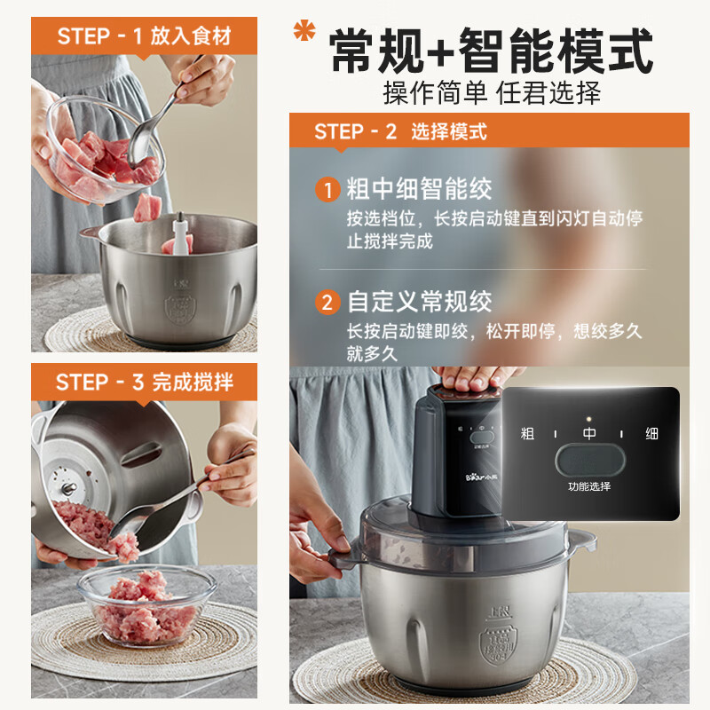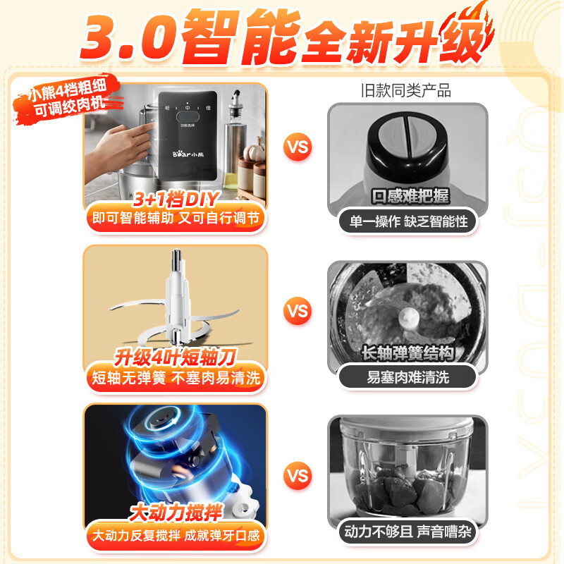 小熊(Bear)绞肉机家用商用 绞馅机 碎肉机 多功能料理搅拌打肉机 肉馅蒜蓉机 大容量粗细可调QSJ-C04X8价格:159.00元!