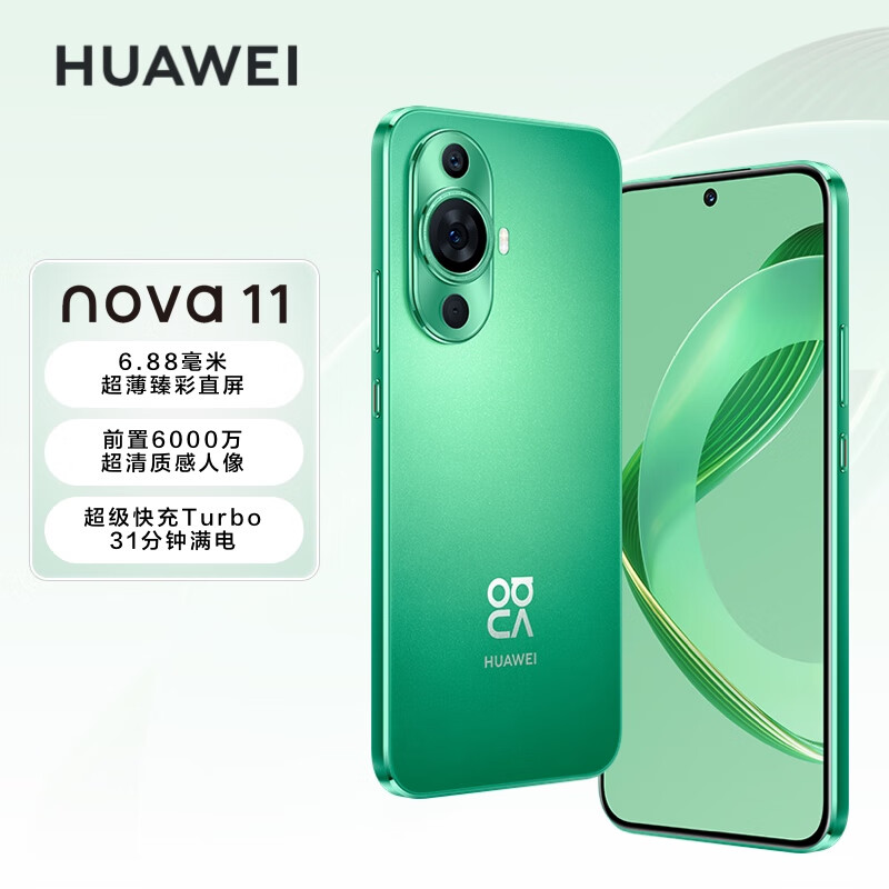 HUAWEI nova 11 前置6000万超广角人像 6.88毫米超薄臻彩直屏 128GB 11号色 华为鸿蒙智能手机价格:2399.00元!