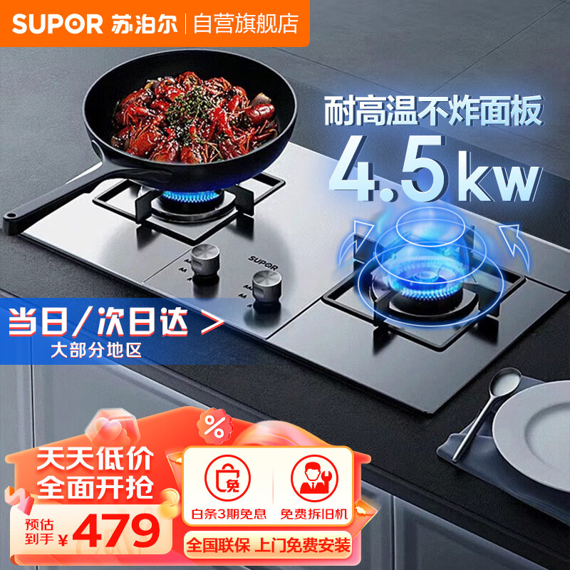 苏泊尔(SUPOR)燃气灶家用天然气灶不锈钢液化气灶双灶台式嵌入式两用灶具NS21 【罐装液化气】4.5KW聚能猛火价格:729.00元!