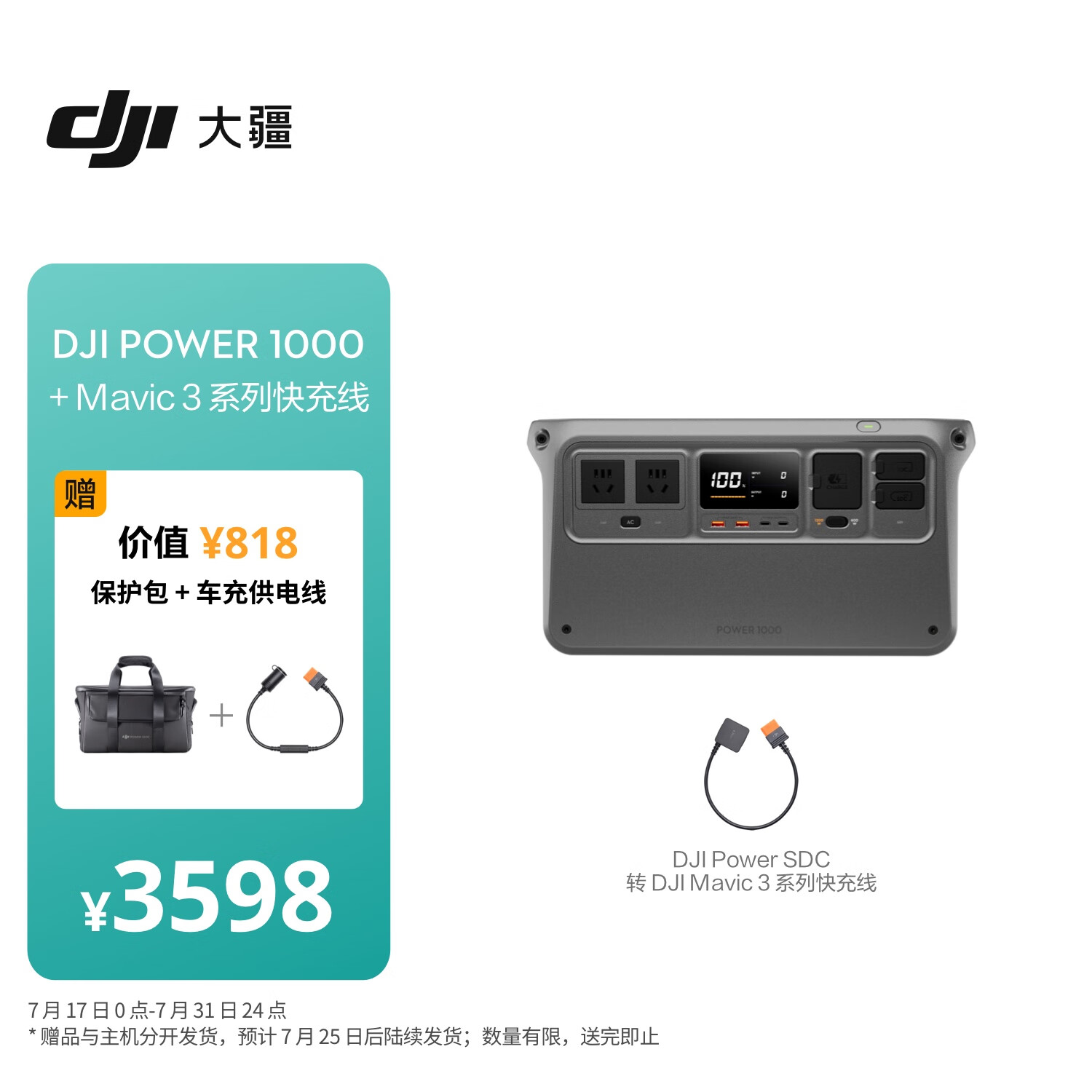 大疆【2600W真大功率】户外移动电源 1度电 220V大容量 露营自驾 DJI Power 1000+Mavic 3 系列快充线价格:3598.00元!