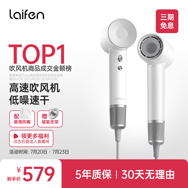 徕芬Laifen 家用吹风机 大功率速干不伤发电吹风 莱芬负离子低噪音吹风筒 赠男士女士七夕情人节礼物 LF03简白(赠磁吸支架)价格:900.00元!