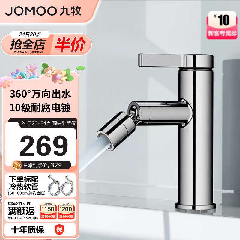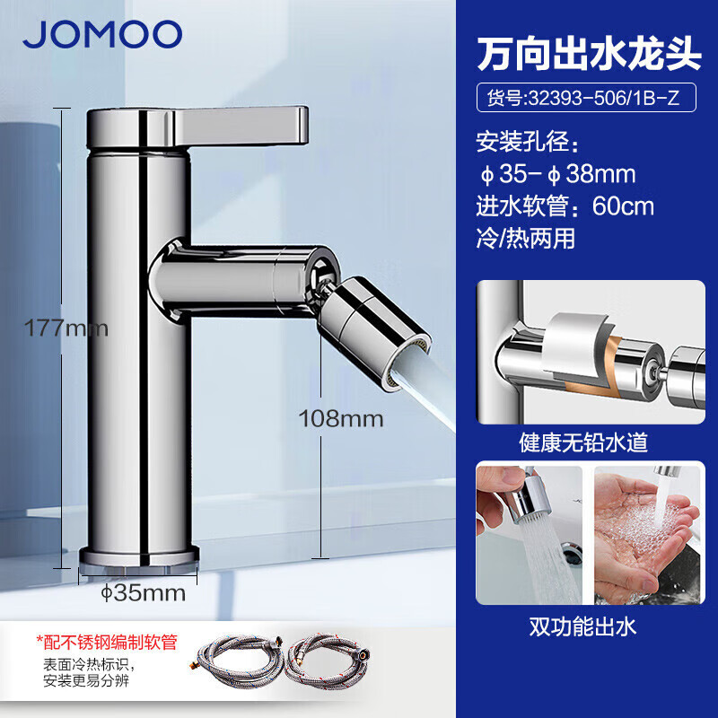 九牧(JOMOO)万向出水健康面盆水龙头卫生间卫浴冷热水龙头32393-506/1B-Z价格:319.00元!