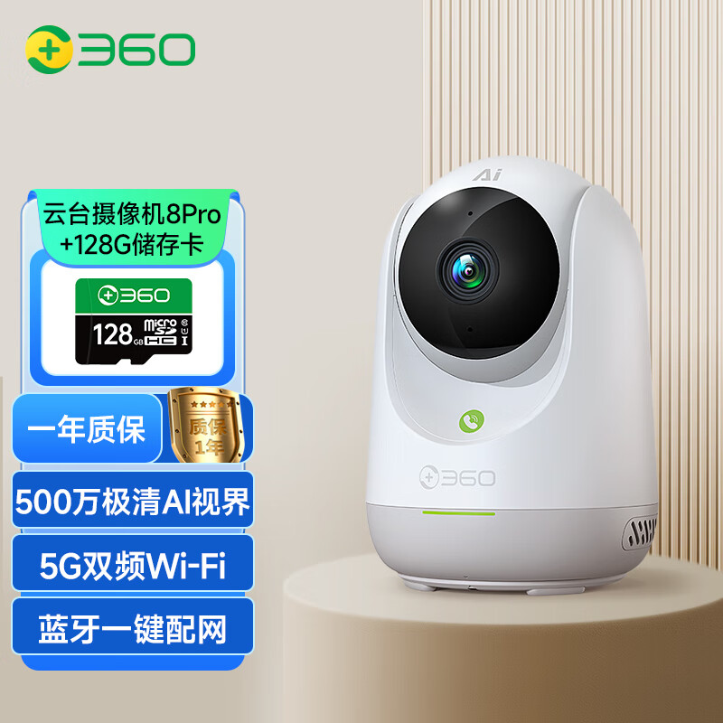 360摄像头 8Pro 500万像素微光全彩AI人形侦测手机查看 双频WiFi家用监控云台摄像头婴儿看护器价格:299.00元!