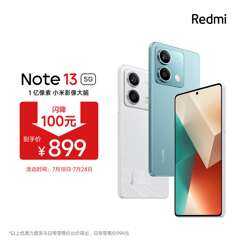 小米Redmi Note13 5G 1亿像素 超细四窄边OLED直屏 6GB+128GB 时光蓝 SU7 5G手机价格:899.00元!
