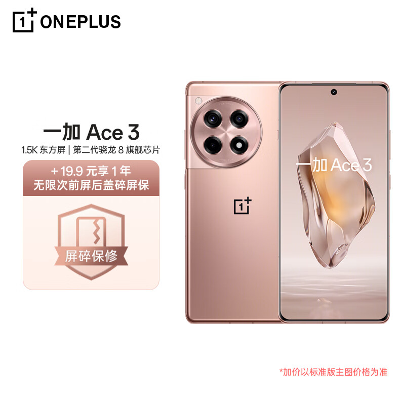 一加 Ace 3 16GB+512GB 鸣沙金 1.5K 东方屏 第二代骁龙 8 旗舰芯片 OPPO 5G手机【1年无限次屏碎保】价格:3018.90元!