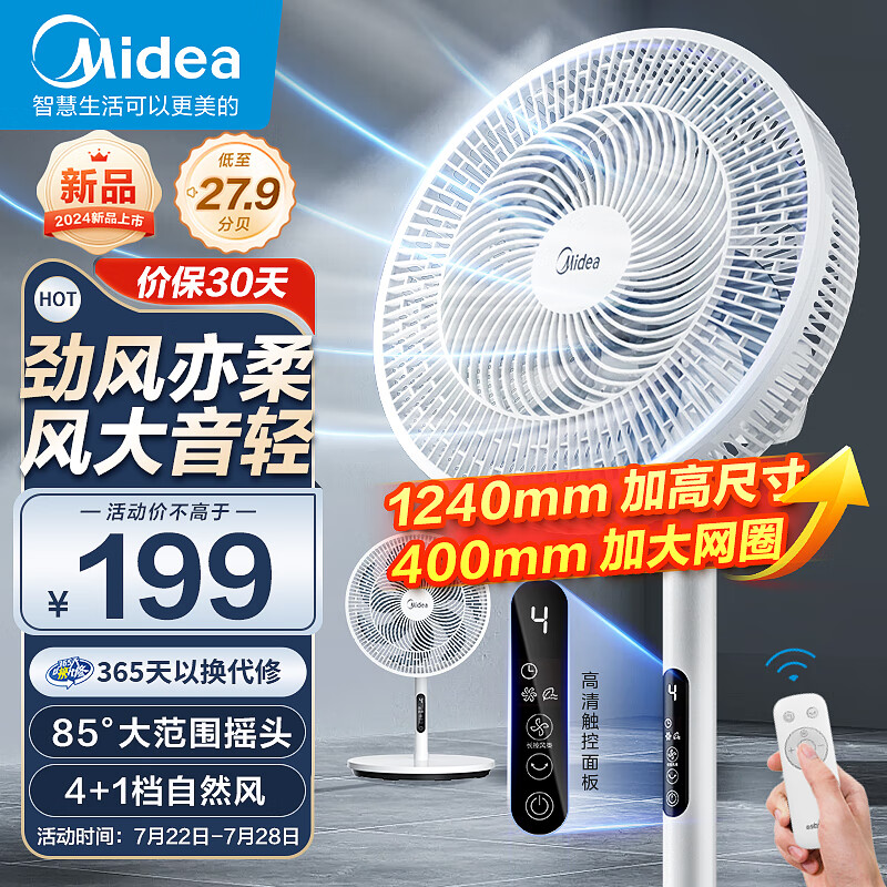 美的(Midea)【飓风节能】七叶柔风立式电风扇/家用轻音落地扇/台式小型风扇/大风力遥控定时摇头风扇SAH35BSJ价格:219.00元!