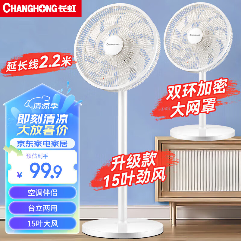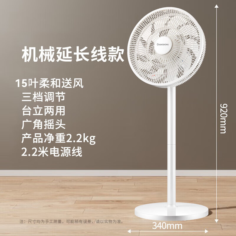 长虹(CHANGHONG)电风扇落地扇家用立式机械电扇台扇摇头电扇空气循环风扇CFS-LD3016T延长线价格:99.90元!