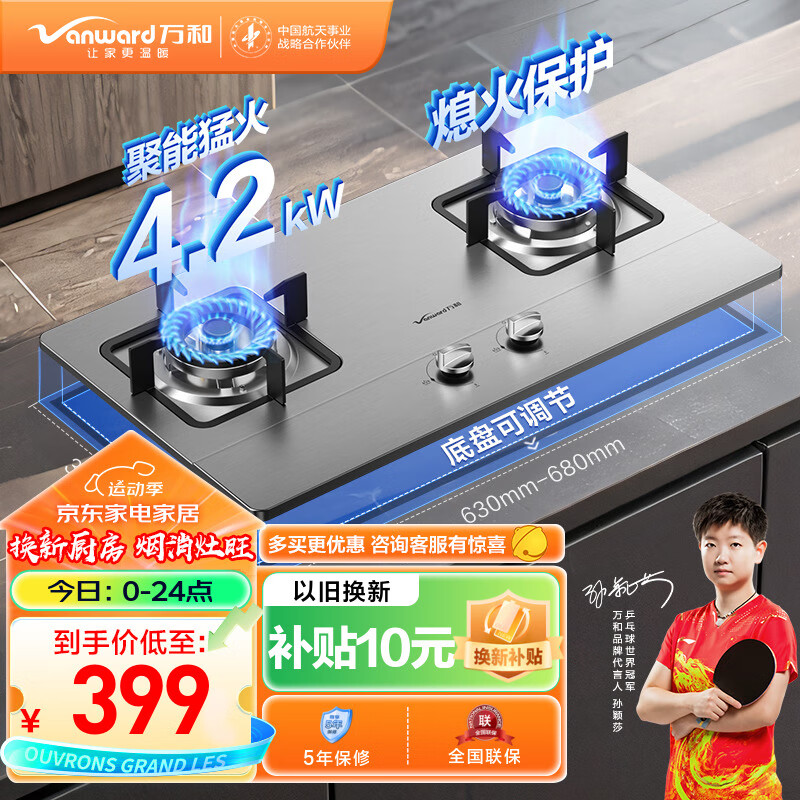 万和(Vanward)家用台式嵌入式燃气灶具 双眼灶 4.2kW大火力 不锈钢煤气炉煤气灶 JZY-B6B338XW(液化气)价格:398.00元!