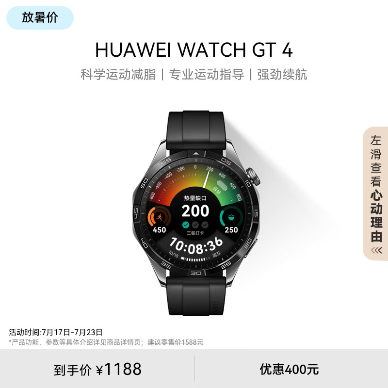 华为WATCH GT4智能手表呼吸健康研究心律失常提示华为智能手表华为gt4曜石黑 送男友男表46mm价格:1188.00元!