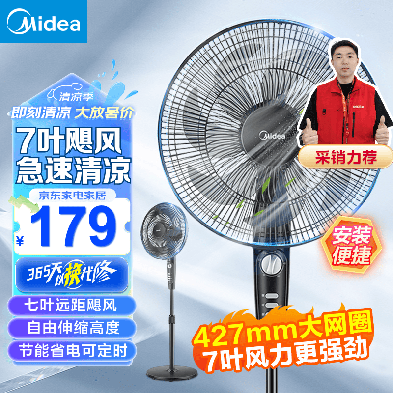 美的(Midea)电风扇落地扇家用大风量 远距强风电扇 立式轻音节能可定时降温 【热销推荐】7叶大风力35MA价格:299.00元!