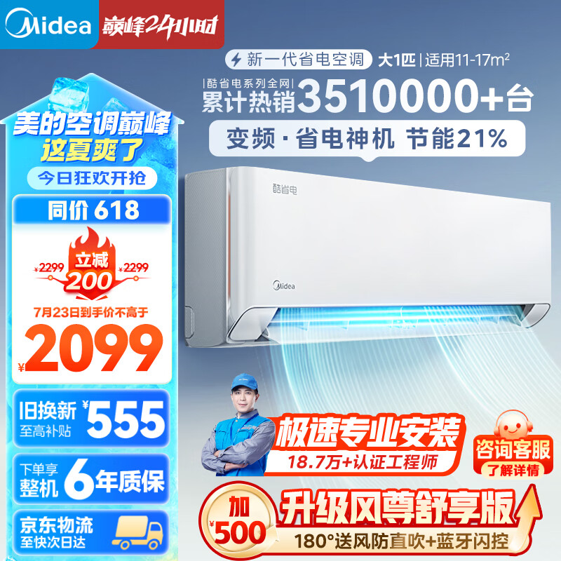 美的(Midea)空调 大1匹 酷省电 三级能效 变频冷暖 自清洁 壁挂式空调挂机 智能家电 KFR-26GW/N8KS1-3价格:2099.00元!