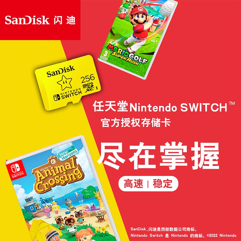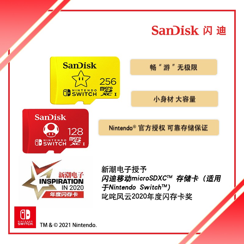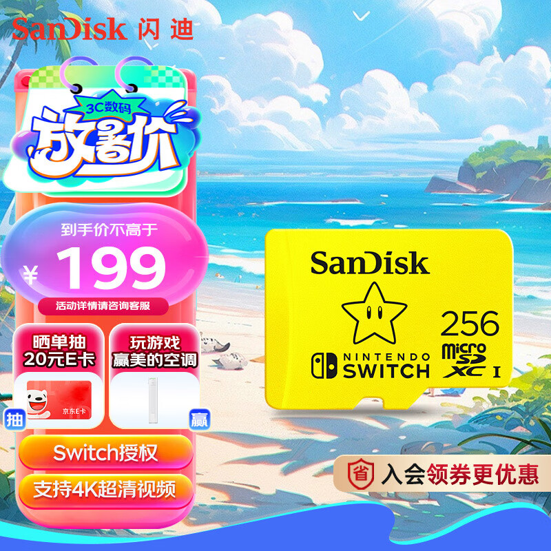 闪迪(SanDisk)256GB TF(MicroSD)内存卡 U3 4K 游戏存储卡 读速100MB/s Switch任天堂授权 超级马里奥主题款价格:199.00元!