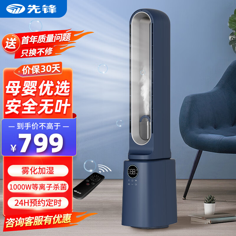 先锋(SingFun)遥控无叶风扇家用等离子杀菌净化塔扇直流变频轻音大风量电风扇落地扇超声波加湿DWY-S3R价格:799.00元!