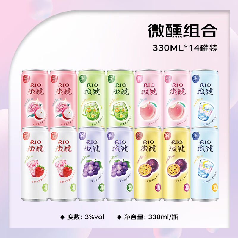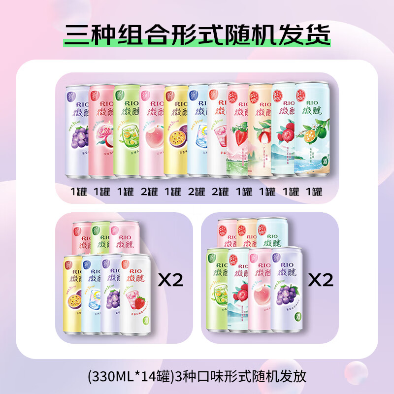 锐澳(RIO)洋酒 预调 鸡尾酒 果酒 微醺小美好 330ml*14罐 (口味随机发货)价格:96.00元!