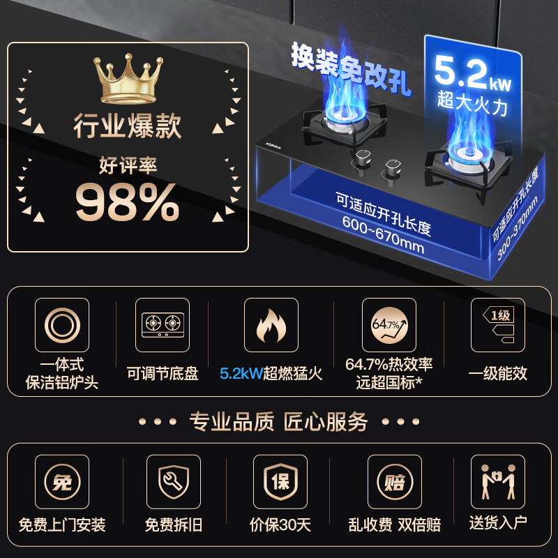 功能:童锁保护,熄火保护,高热效率