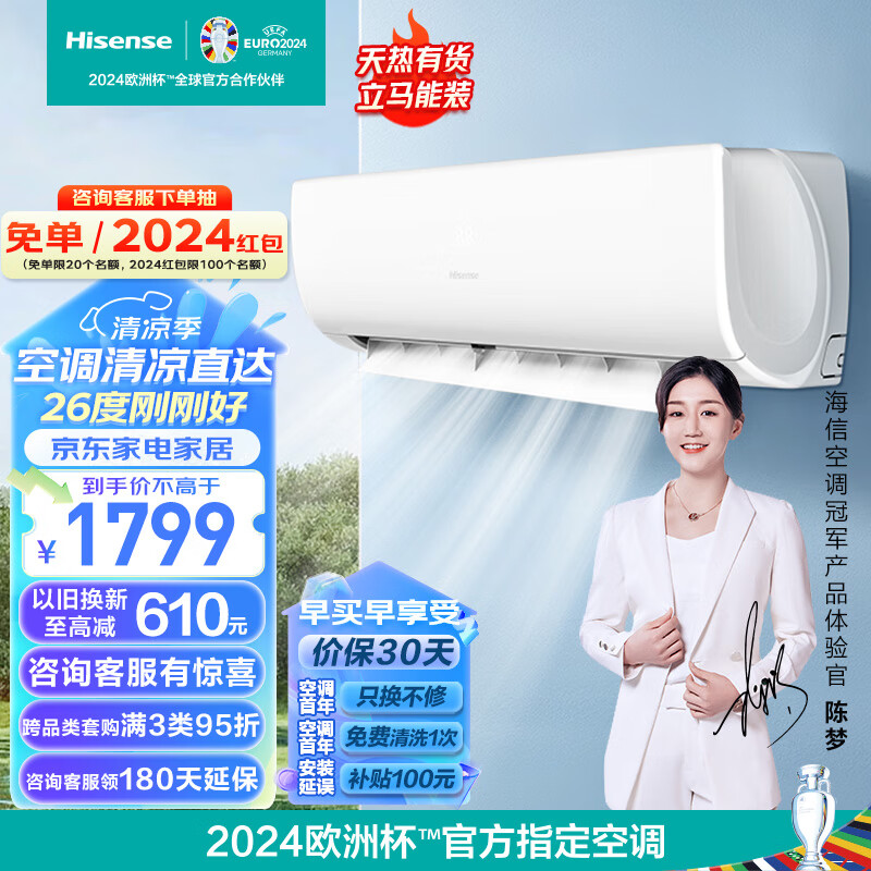 海信(Hisense)大1匹 速冷热 新三级能效 一键息屏节能自清洁冷暖空调大一匹壁挂式卧室空调挂机KFR-26GW/E25A3价格:1799.00元!