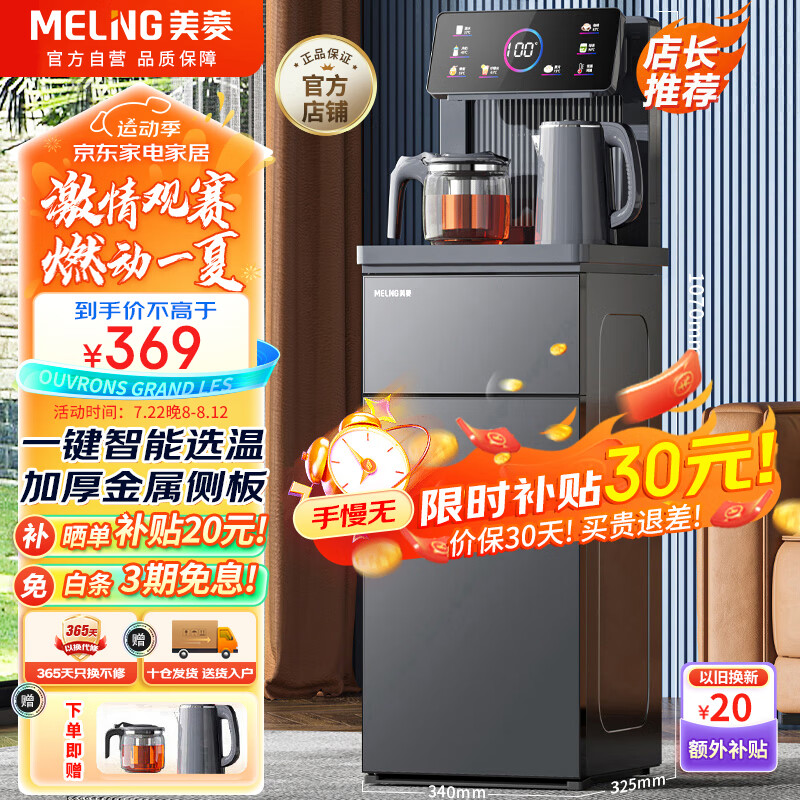 美菱(MeiLing)茶吧机 家用饮水机智能遥控立式下置水桶 LED炫彩大屏一键选温泡茶机家用全自动-温热型MY-C912价格:399.00元!