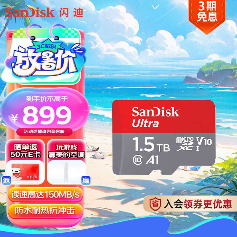 闪迪(SanDisk)1.5TB TF(MicroSD)内存卡 A1 U1 C10 高速移动版存储卡 读速150MB/s 手机平板游戏机内存卡价格:899.00元!