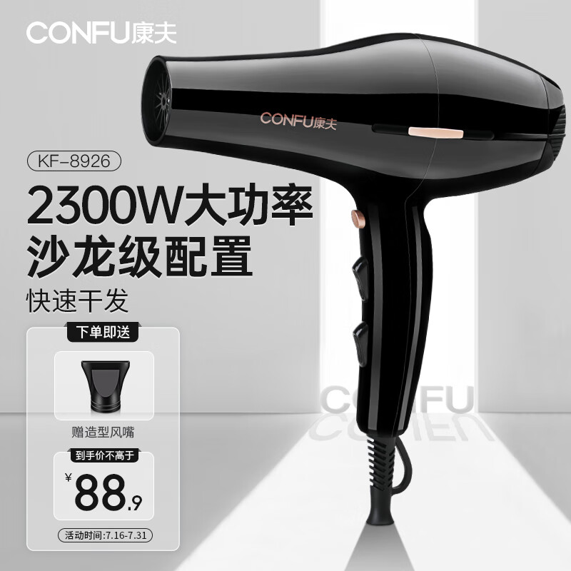 康夫(CONFU)电吹风机2300W大功率家用速干大风力理发店发廊专业吹风筒KF-8926价格:99.90元!
